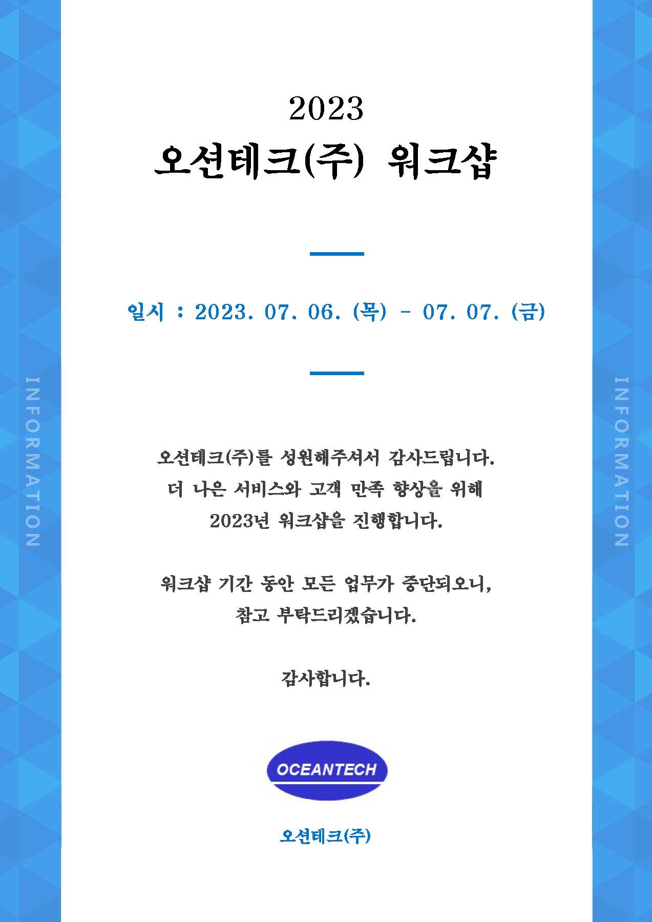 고객지원 홈페이지 이동 고객지원 알리는 바다 OCEAN TALK 고객문의 채용안내 AS문의/신청 알리는 바다 오션테크㈜의 소식을 알려드립니다 제목 2023 오션테크 워크샵 등록일 2023-07-05 10:40:49 조회 5752 첨부파일 2023.jpg 목록 이전 화면 이전글과 다음글 보기 구분 내용 이전글 2023년도 한국해양학회 추계학술대회 다음글 한국지구물리·물리탐사학회 2023 봄 학술대회